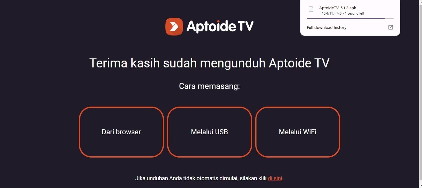Proses update bisa kita lalukan dari aplikasi broser yang terpasang di STB, tinggal kita ketik aptoide tv atau klik link di atas.
