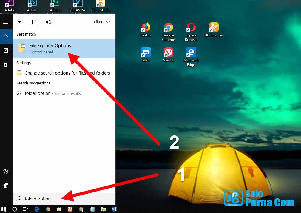 Ini adalah cara ke dua yang bisa kamu lakukan untuk menampilkan File Hidden. Klik Search lalu ketikkan “Folder Option” dan silahkan pilih File Explorer Options maka nanti akan tampil kota File Explorer Options-nya.