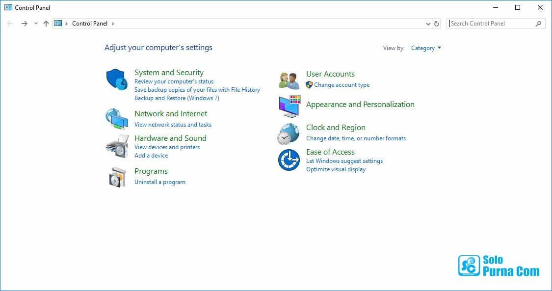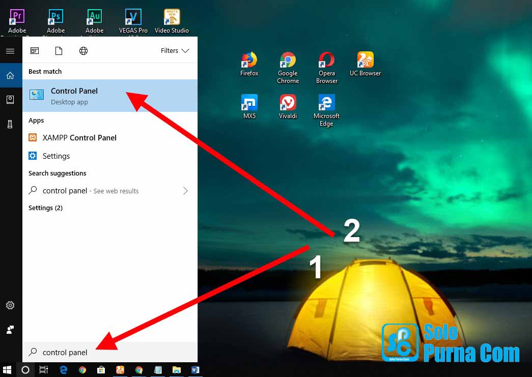 Jika cara itu tidak muncul gunakan cara ini, silahkan ketikkan control panel di menu search lalu klik itu.